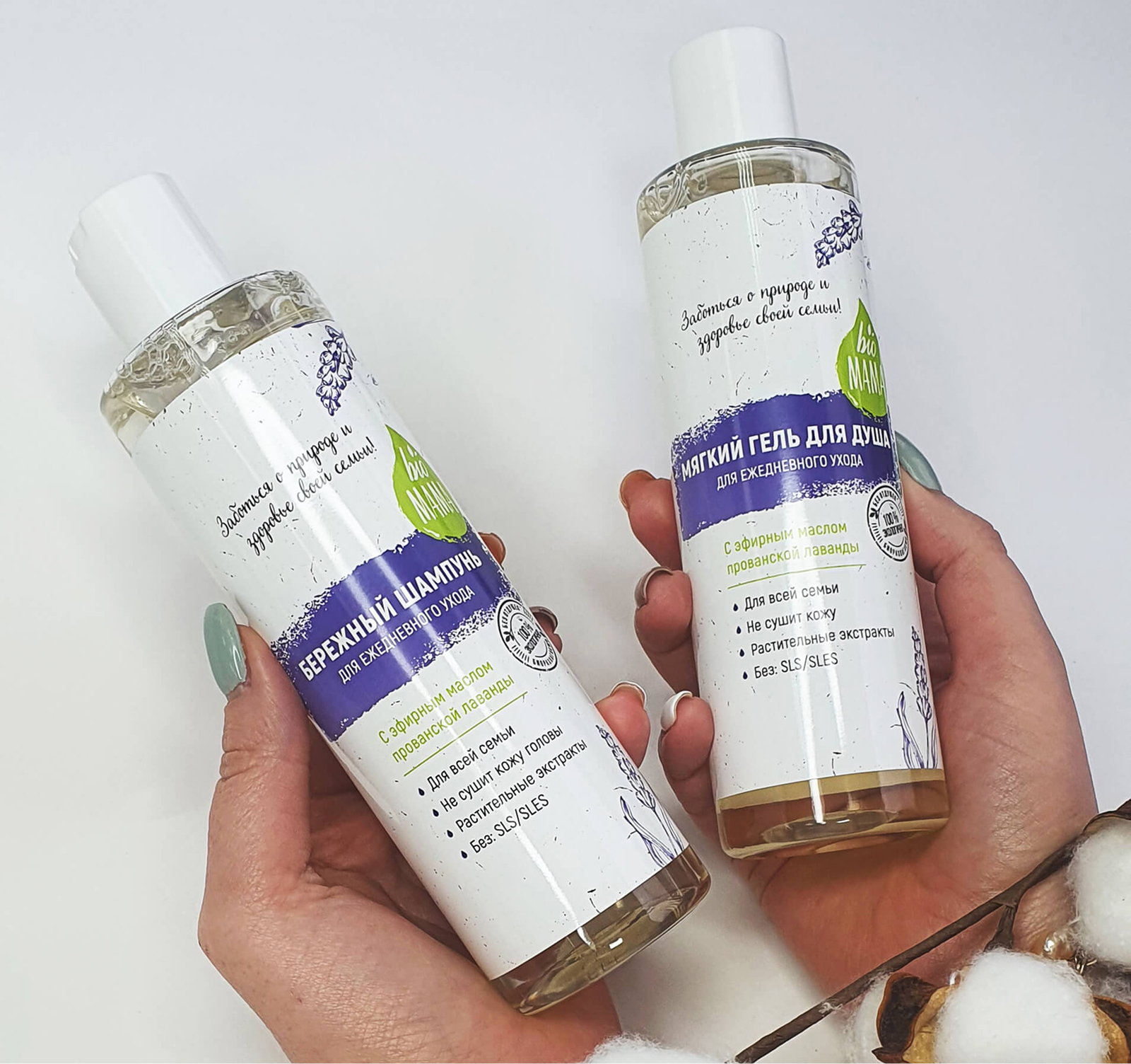 В отличие от них, гель Bio Mama построен на мягких поверхностно-активных веществах растительного происхождения (например, кокамидопропилбетаин), которые бережно очищают, не пересушивая. Консервируется средство более нейтральными и реже вызывающими реакции компонентами — бензойной и сорбиновой кислотами. Лёгкий успокаивающий аромат даёт только натуральное эфирное масло лаванды. При этом формула обогащена настоящими уходовыми компонентами: провитамином В5 (пантенол) и экстрактами трав (череда, шалфей) для снятия раздражения, а витамин Е и глицерин обеспечивают кожу увлажнением.